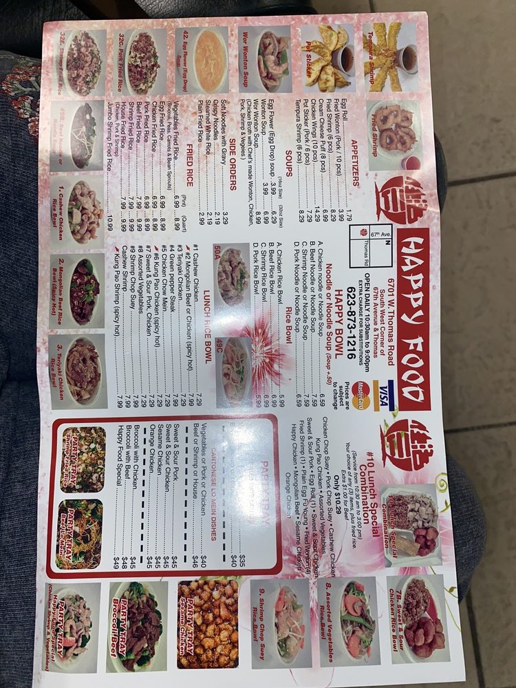 Happy Food is a Chinese restaurant located in Phoenix, AZ, known for its diverse menu and quality dishes. With options for delivery, takeout, and even reservations, this spot caters to every dining preference. Reviews rave about the fresh and flavorful dishes, like the orange chicken with a hint of citrus, tender teriyaki chicken, and shrimp fried rice cooked to perfection. The welcoming atmosphere and attentive service make dining at Happy Food a pleasant experience. Whether you're craving the classic wonton soup or the house fried rice, this place has something for every Chinese food lover. Don't miss out on this hidden gem in a small strip mall, where every bite is a delicious surprise.